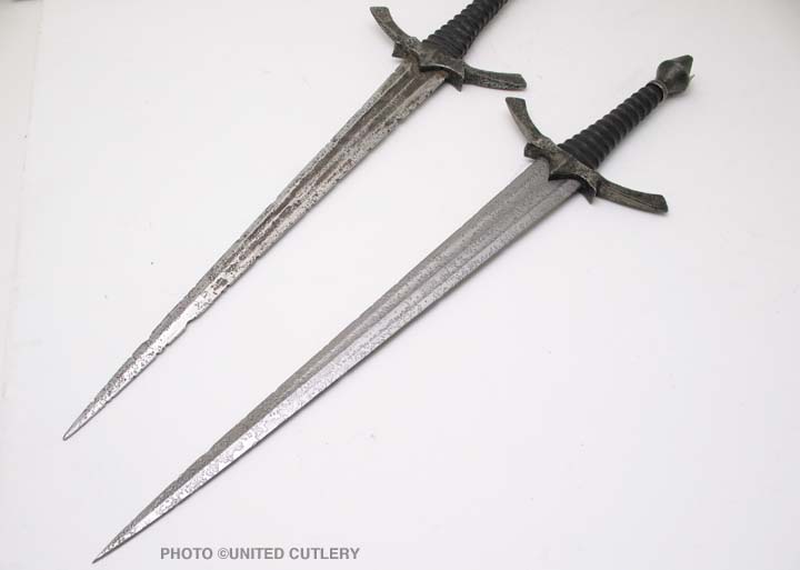 Photos of the second Witchking dagger protoype and the Weta prop - November 2008. This is the final version with all weathering and paint effects added. I would have liked some paint effect on the blade to match the prop more closely but time constraints and cost prohibited this. Overall, the replica came out very well. |