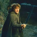 WEATHERTOP COLLECTION - SWORD OF SAM (2009) - Prop replica for United Cutlery's Lord of the Rings Weapons and Armor line. I supervised the prop replicas for over fifty items for UC's LOTR line, replicated directly from the Weta Workshop props. From Peter Jackson's film adaptation of Tolkien's book, The Fellowship of the Ring. This is the short sword Strider gives Sam at Weathertop in Peter Jackson's Fellowship of the Ring film. We had envisioned a line of “Weathertop” Hobbit swords since the first film came out, and this is the first sword in that collection. They will make a nice set with Sting, if all four can get made. Though these were only in the films and did not appear in the books, they were fan favorites. These four swords each have a unique look, though Sam's looks Elvish to me. It may be a Gondorian sword. It is not made clear in the film where Strider acquired these. We were not able to acquire the actual prop for this one, so it had to be reproduced from prop photos only, and screen grabs from the film. It is a pain doing it this way, but we got a fairly accurate replica nevertheless. It is scheduled for a 2009 release. The Fellowship of the Ring photos (©New Line Cinema)