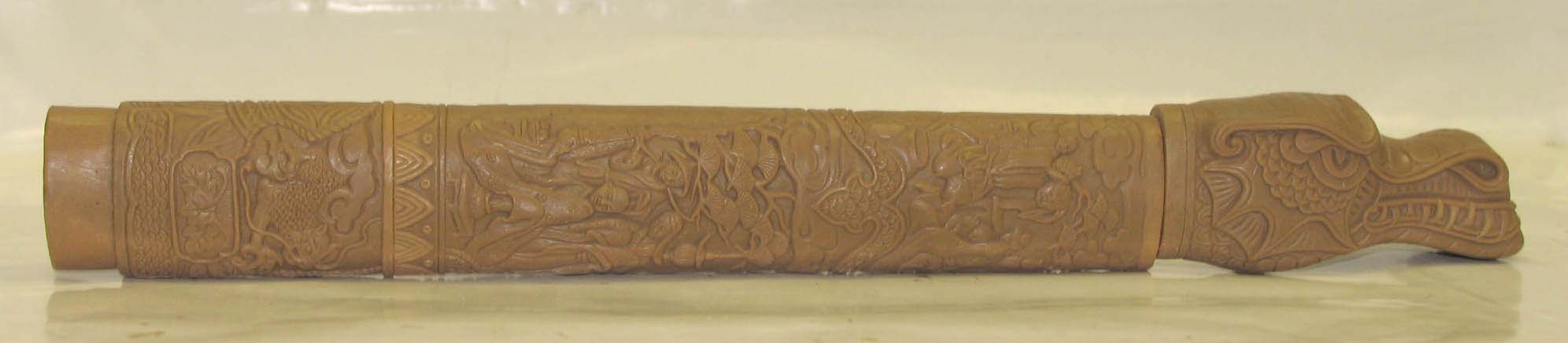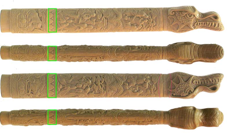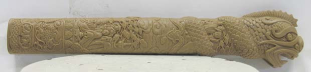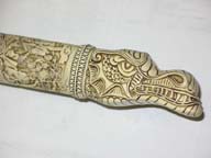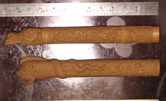 Photos (above) of the new H2 and Duncan handle carvings in progress. The sculpt, done at United's factory, went through several revisions but only got about 85% match to my control drawing design - mid 2008
