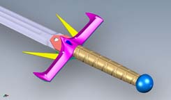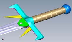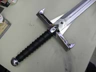 Final prototype of the sword with a few minor revision to the tooling and finish. The blade mechanism needed some fine tuning to smooth out the gears. - May 2009