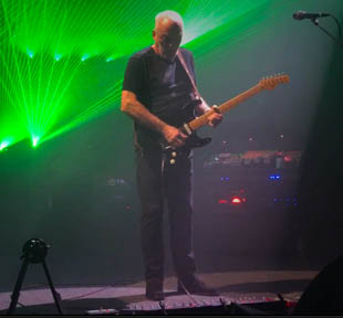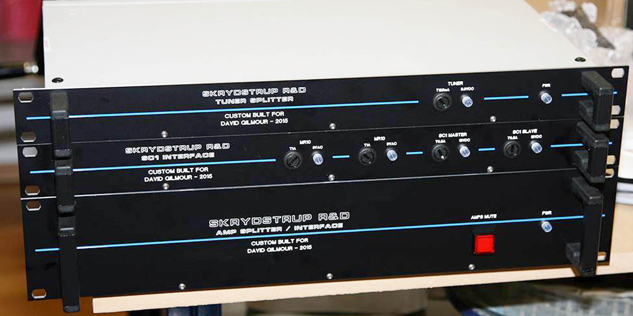 For my setups and sound clips CLICK HERE For song-by-song signal chains CLICK HERE THE 2015-16 RATTLE THAT LOCK TOUR AND LIVE AT POMPEII - In 2015 David toured in support of his Rattle That Lock album. On June 25th, 2016 a concert was televised and streamed live from Freedom Square in Wroclaw, Poland. It featured a full orchestra conducted by Zbigniew Preisner, and David and his band were in top form. One of the other highlights of the tour was David performing in the same ancient Roman ampitheatre in Pompeii that Pink Floyd performed in back in 1972 for the film Pink Floyd: Live at Pompeii. In 2017 several documents of the Pompeii concerts called Live at Pompeii were released which included a live album, a DVD/Blu Ray video of the concert, 2015-16 tour documentaries, part of the Wroclaw concert in Poland, and the BBC documentary Wider Horizons. The concert was also shown in cinemas. Fortunately for us Gilmour gear aficionados, the video content showed most of the gear David used in his live rig in great detail. Live at Pompeii Blu Ray cover and Gilmour playing In Any Tongue at Madison Square Garden in 2016 I was fortunate enough to be able to attend one of David's New York concerts at Madison Square Garden in 2016. Based on the sound I heard in that show, the Wroclaw live broadcast, and audience recordings I listened to from practically every show, David's tone was much brighter and more trebly than on previous tours, especially his high gain sound. David's tone preference seems to be moving more and more into high frequencies as time goes on. I personally prefer the fatter, smoother high gain tones of the past. David's clean and light overdrive tones were slightly thin, but beautiful, especially his tone on 5AM, played on his 1956 Les Paul gold top, and his tone on The Blue and Shine On You Crazy Diamond. David's high gain guitar tones were even brighter and more trebly in the Live At Pompeii audio mix than what I heard live. Dare I say, it even sounds a bit harsh in places. I have to roll a lot of the top end off to listen to some of those songs. THE RATTLE THAT LOCK TOUR RIG - David used an all-new pedalboard rack and a new Skrydstrup R&D effects rig for this tour instead his Pete Cornish rigs used on previous tours. The core of this rig was the Skrydstrup system, which consisted of an SC-1 foot switcher with programmable midi controller, an XT Module extension, two MR10 Loop System racks, and three custom interface units. Each MR-10 rack unit had 10 effects loops and the SC-1 Interface connected the MR10 rack units to David's SC-1 foot switcher, as well as slave foot switcher for Phil Taylor, David's backline tech, to use back stage. David also used a custom Skrydstrup Amp Splitter/Interface with four outputs and a Skrydstrup Tuner Splitter for the Peterson tuner in his rack. For power supplies he used a Cioks Ciokolate under the pedals and Cioks DC5 or DC7 supplies under the plug strip in the back of the pedal rack.