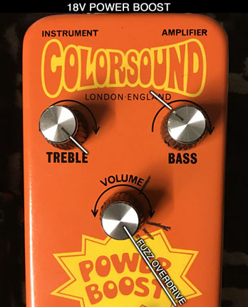 DAVID GILMOUR POWER BOOST TONES - DavidGilmour of Pink Floyd used several overdrive pedals throughout his musical career, with the 18v Power Boost and BK Butler Tube Driver being his favorites. Nothing has quite that same classic Pink Floyd overdrive tone like the Colorsound Power Boost/Overdriver, especially through a Hiwatt amp like the Custom 50 or Custom 100. However, what most people do not realize is that the Power Boost is also a fuzz pedal, on par with the Fuzz Face, and David sometimes used it as such. In fact, I think some of those classic 1970s Pink Floyd high gain guitar solos are actually the Power Boost, not the Fuzz Face.