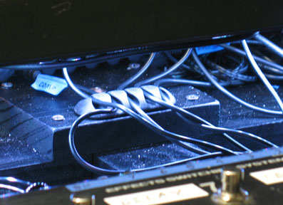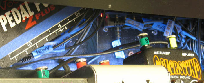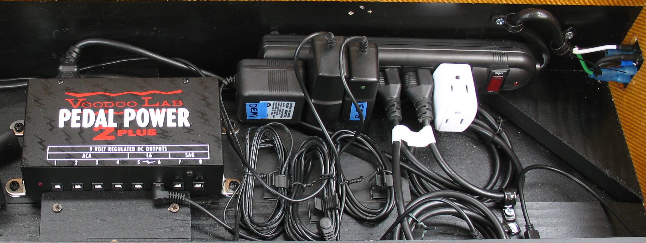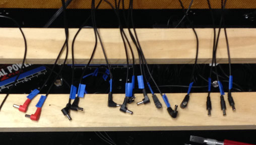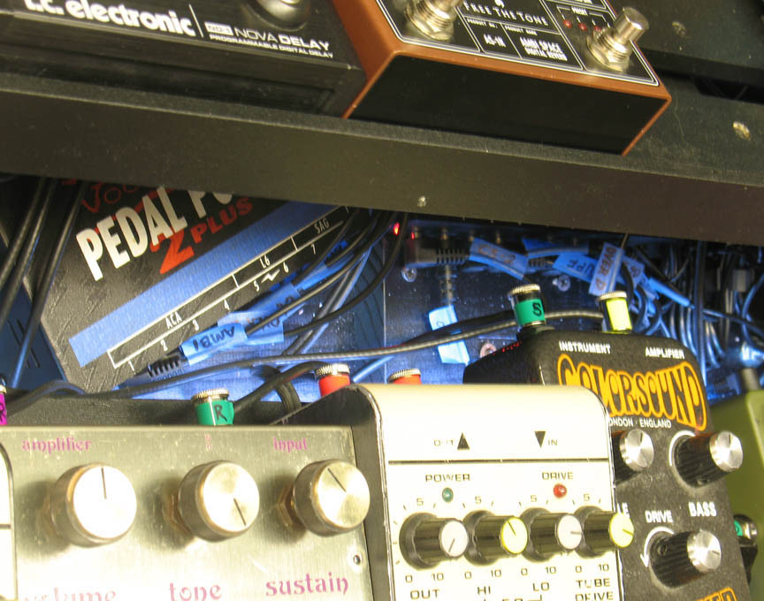 shown above - power supplies and power strip installed and labeling all the Voodoo Labs power supply cables with blue tape