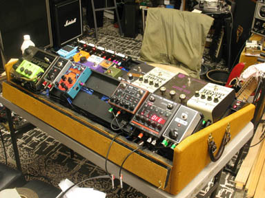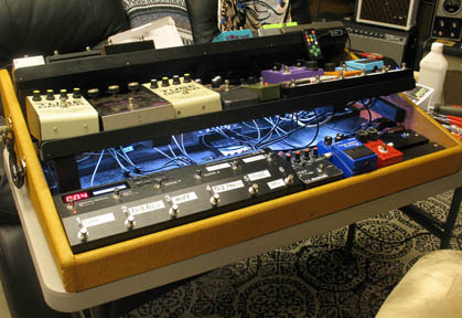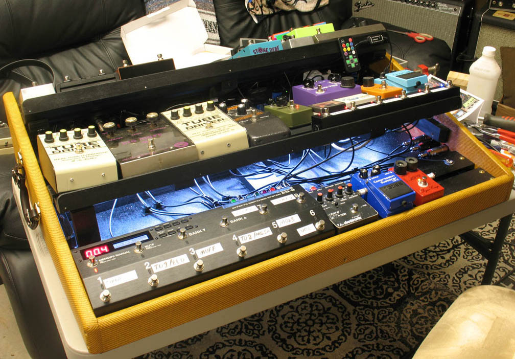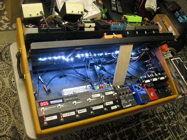 shown above - the completed studio pedalboard with LED stage lighting added