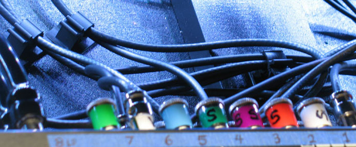 shown above - patch cables with colored tape on the jack to make identification easy